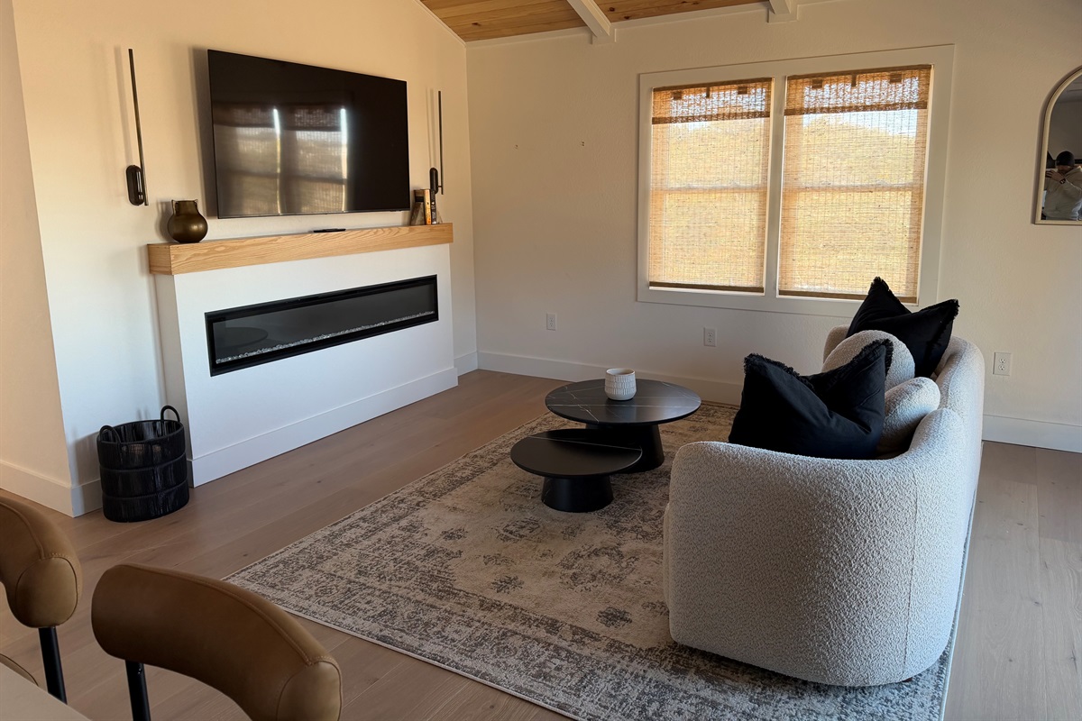 1 Bedroom • 1 Bathroom 1 Bath • Sleeps 1-2You’ll have your own heated pool, hot tub, sauna, and a unique outdoor lounge area beneath the home — all private and exclusively yours. Spend your days unwinding in the warm pool, soaking in the hot tub, or stepping into the sauna for a quiet reset. In the evenings, settle into a comfortable bedroom, enjoy the peaceful atmosphere, and let the space do exactly what it was designed for: connection, rest, and simple comfort.